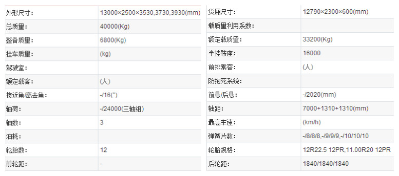 外形尺寸(mm):(長×寬×高) | 13000×2500×3330,3530,3730 | 總質(zhì)量(kg) | 40000 |