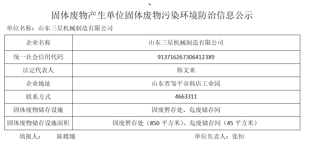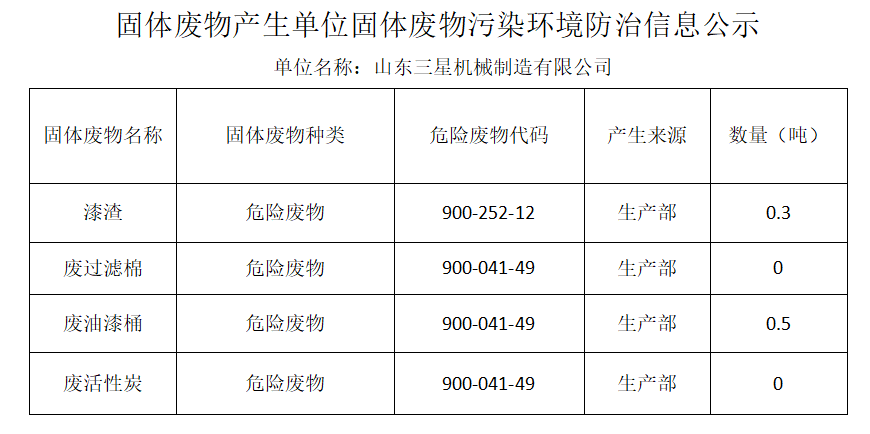 山東三星機械制造有限公司危險廢物污染防治信息公示(2021)