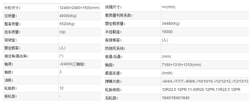 后輪距(mm) | 2040/2040/2040 | 軸荷(kg) | -/8000/8000/8000 |